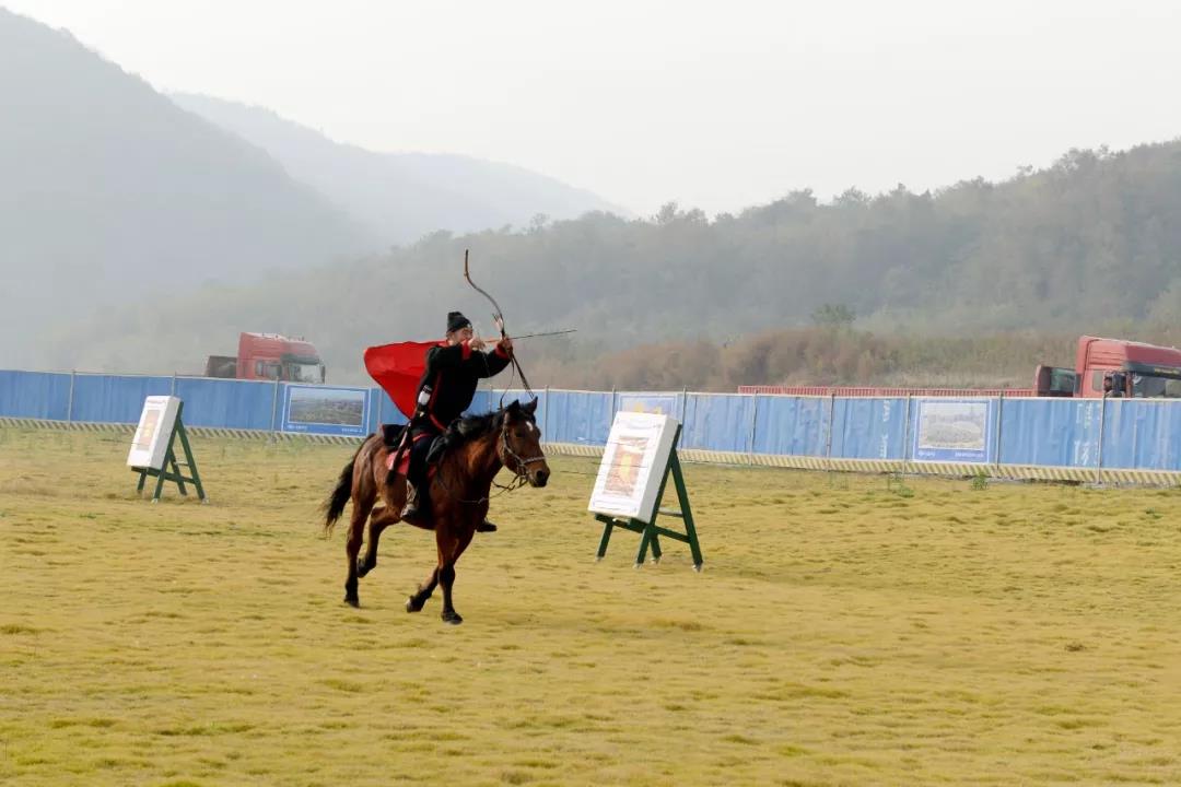 傳統騎射表演從遠處策馬而來(lái),弓箭手拈弓搭箭,重現古時(shí)將軍神勇風(fēng)采;