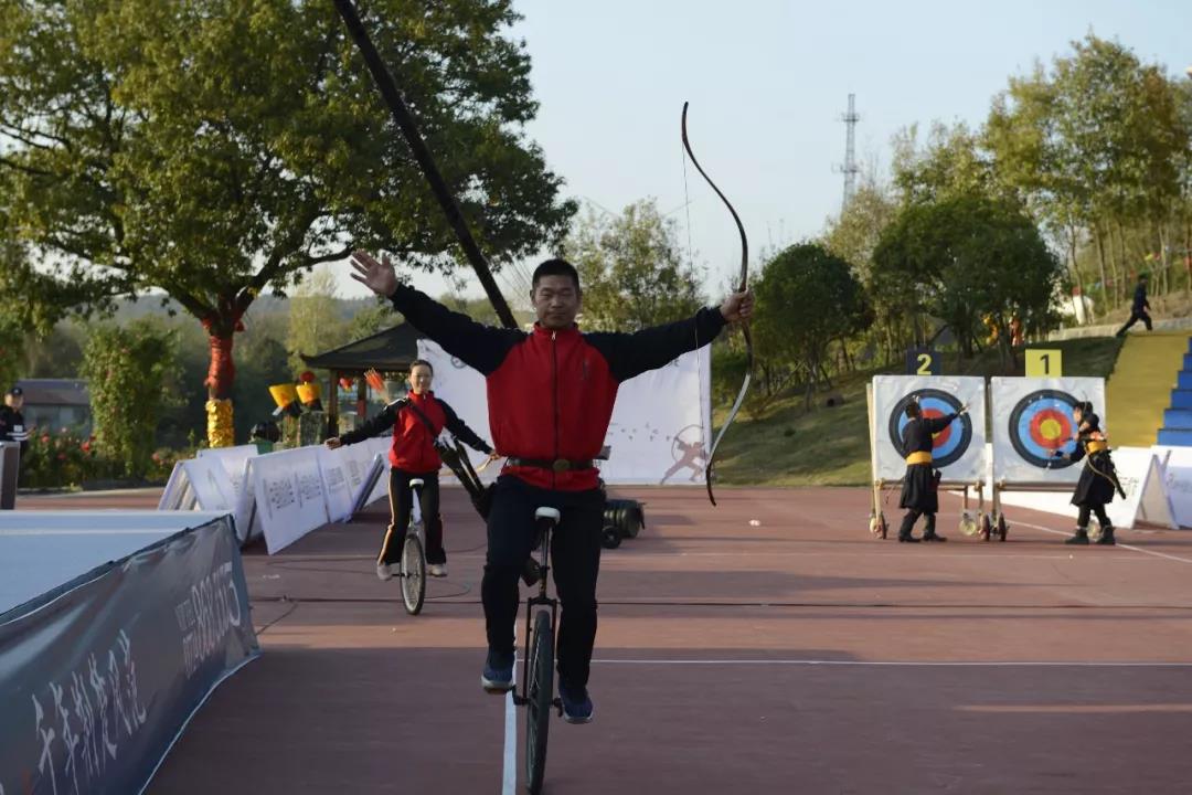 現代獨輪車(chē)射箭表演,表演者一邊騎車(chē)一邊射箭,展示了超高的射箭技法。