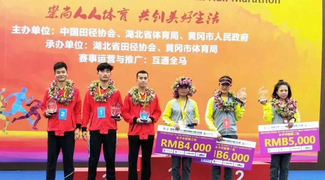 經(jīng)過(guò)激烈角逐,杜士洋、喻桐、黃鴻分別以 1小時(shí)14分27秒、1小時(shí)18 分14秒、1小時(shí)20分16秒的成績(jì)獲得男子半程前三名;張新、唐思琴、漆俊杰分別以1小時(shí)30分15秒、1小時(shí)36分13秒、1小時(shí)38分22秒獲得女子半程前三名。這六名選手均來(lái)自中國,黃岡真是炎黃子孫的福地!