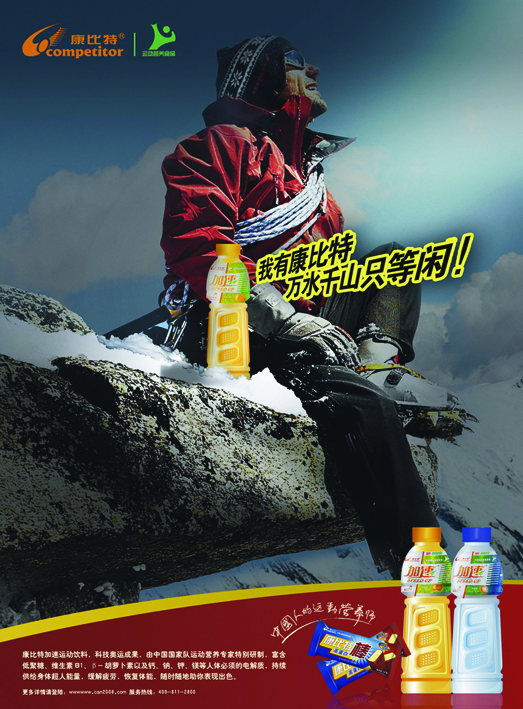 作為一種運動(dòng)營(yíng)養型飲料,康比特面臨著(zhù)從專(zhuān)業(yè)運動(dòng)員市場(chǎng)走向大眾領(lǐng)域擴張的市場(chǎng)困擾。而康比特在大眾消費者心目中認知度低,且市場(chǎng)占有率低,分銷(xiāo)渠道不成熟,基于上述情況,我們?yōu)槠湓O計了突出優(yōu)良品質(zhì)的傳播口號——中國人的運動(dòng)營(yíng)養師。采取了“推”“拉”相結合的廣告投放策略,精心組織了媒體組合與排期,通過(guò)執行大大提高了品牌知名度。